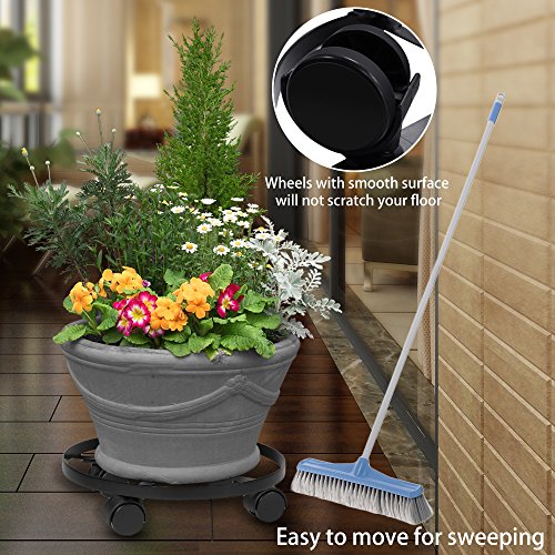 Amazon Com Choclaif Plant Caddy With Wheels 2 Pack Black Heavy Duty Plant Stand With Universal Wheels Round Pot Trolley For Indoor Outdoor 14 Patio Lawn Garden